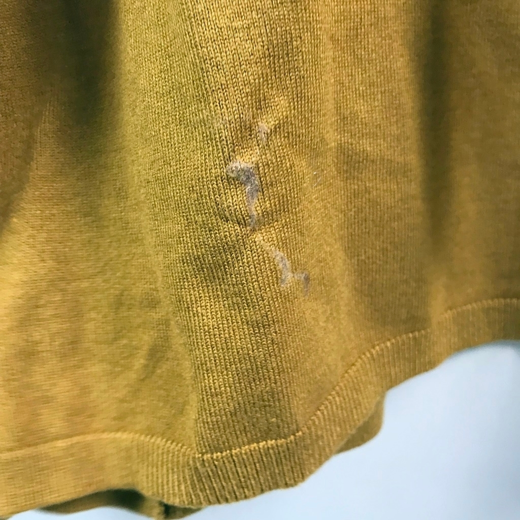 素材タグありません。後身頃汚れあります。前身頃糸ツレあります。