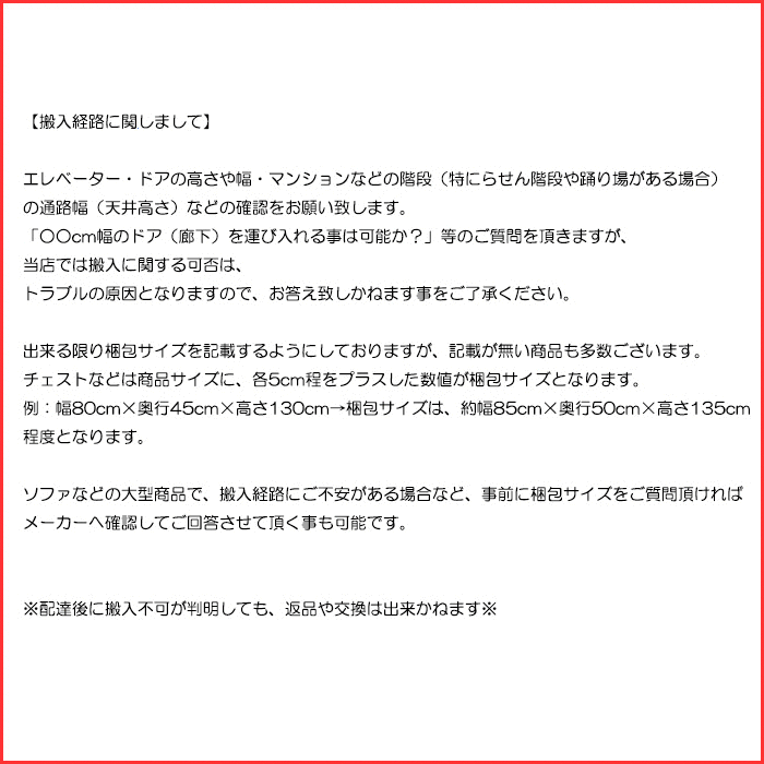 落札・ご購入前に、必ず商品の搬入経路の確認をお願いします。