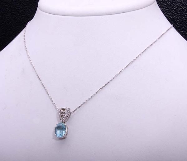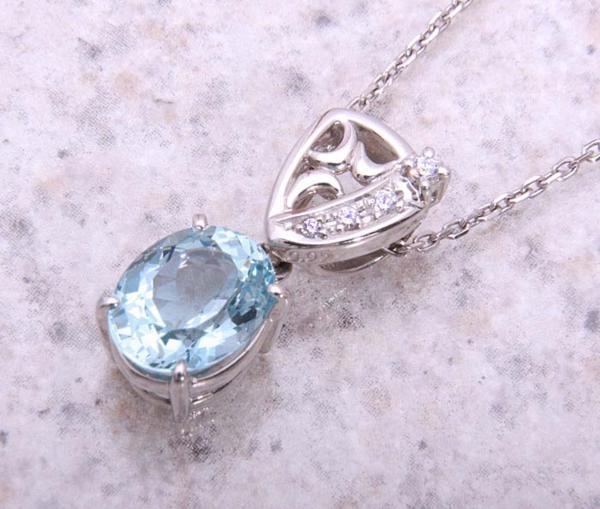 透明感のあるライトブルーのアクアマリンが輝くネックレスです。