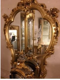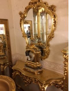 イタリア輸入ロココ調アンティーク調シリックSILIKのゴージャスゴールド色コンソールミラーセットドレッサー
