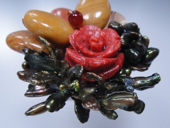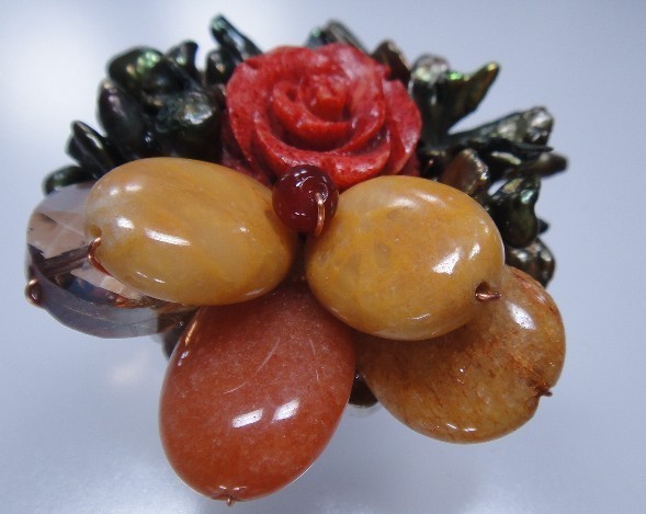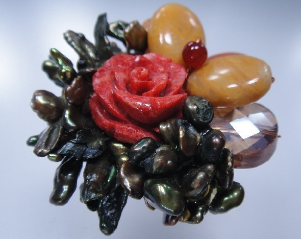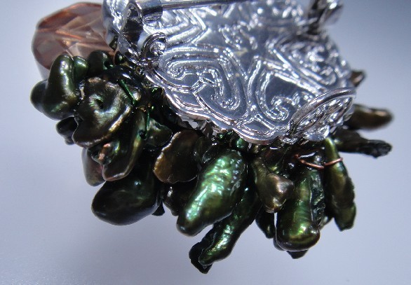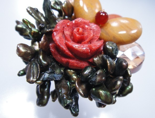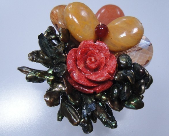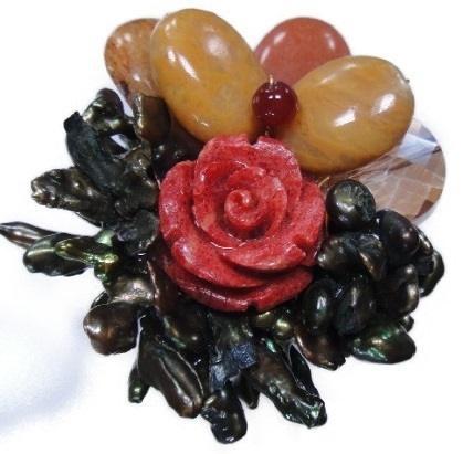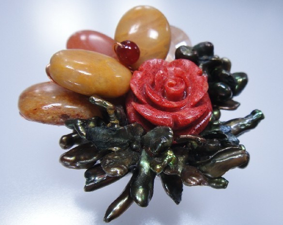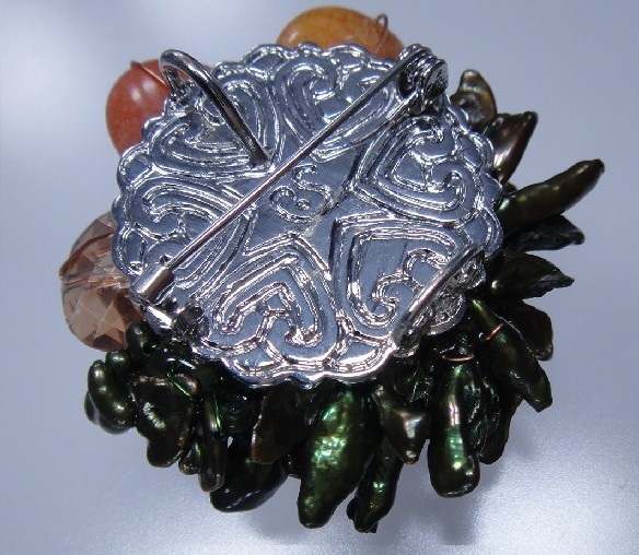 素材手作りイタリア オリジナルデザイン サイズ:ブローチ5.0*5.0cm 重:32g 。 珍しい天然淡水真珠と天然石。高級素材なので、変色はしません、とっても丁寧に作っております。
