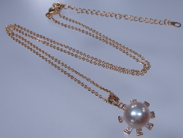 素材人工ダイヤモンドと天然淡水真珠です。ネックレスとTOPの部分の材質は全て18KGP 925銀です。真珠の照り非常に良い、キズ(えくぼう):ありません。