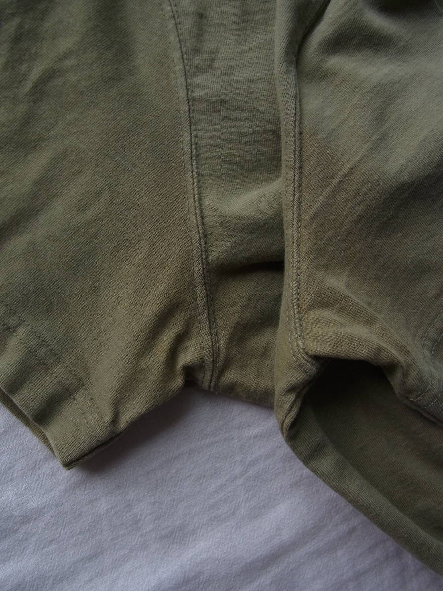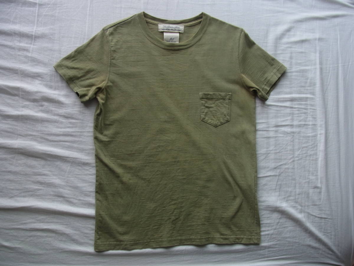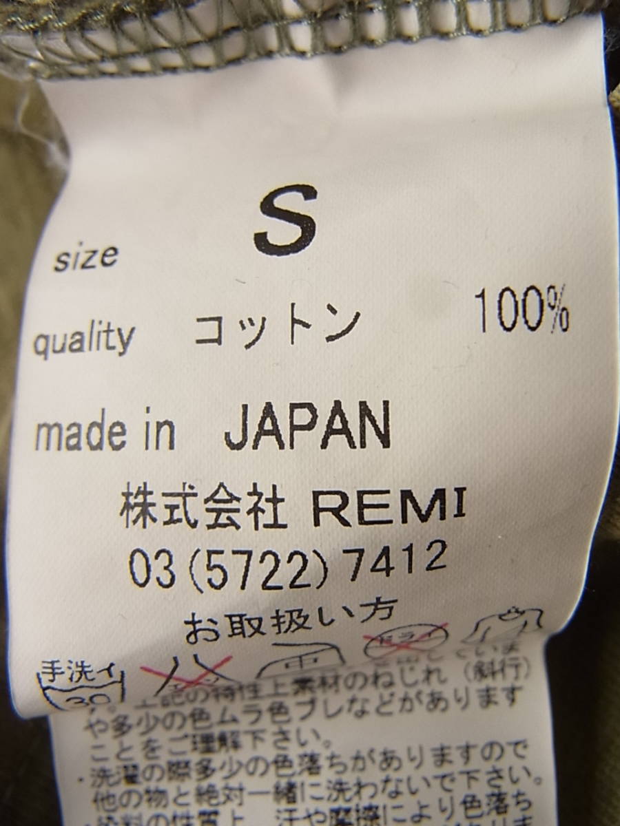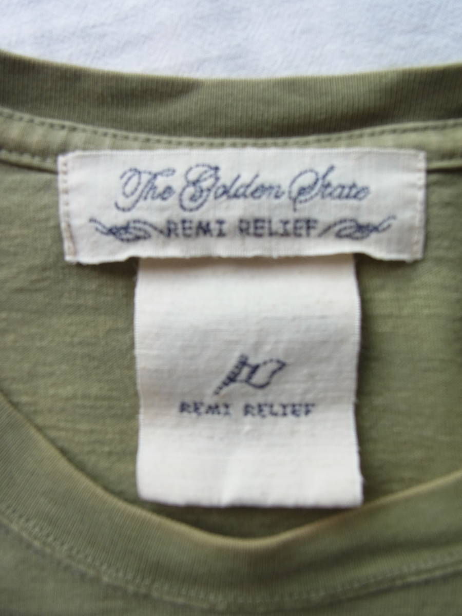 REMI RELIEF レミ レリーフ ダメージ ユーズド加工 ポケット付きTシャツ サイズ S 日本製 オリーブカーキ 色褪せ 汗シミ有り