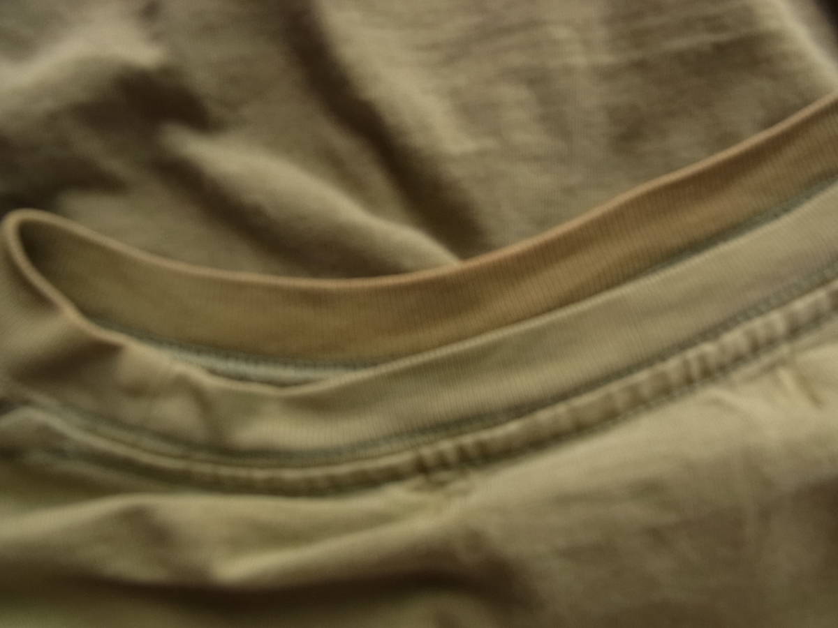 レミレリーフの度詰め天竺素材で、このブランド独特のビンテージの様なユーズド、ダメージ加工が施されたポケTになります。USEDで着用感と色褪せ、5枚目の画像の様な汗シミが御座います。