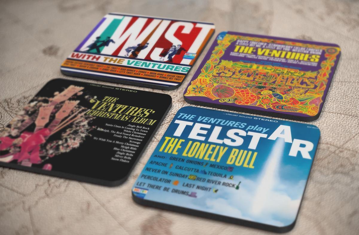 人気レア!《ザ・ベンチャーズ - The Ventures》オリジナル・アルバム ジャケット デザイン コルク製 コースター 4個セット-1-4(1)