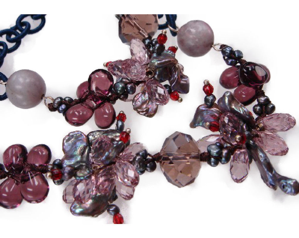 素材天然石と天然淡水真珠です。留め具の部分の材質はステンレスです 。真珠の照り非常に良い、淡水真珠特有の凹凸が若干ございます。