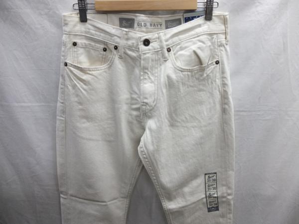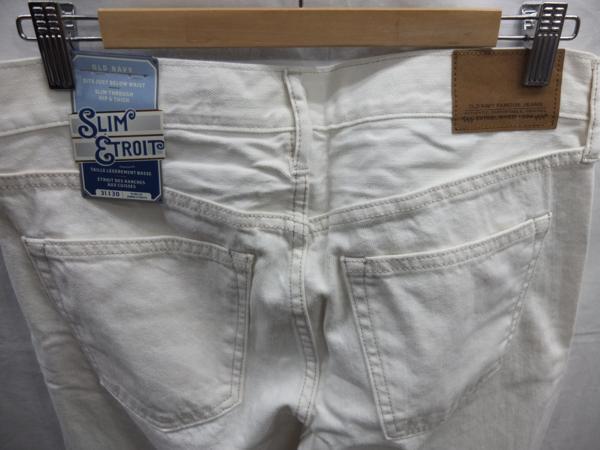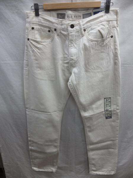 ★送料割引!大きいサイズ ホワイトジーンズ スリムパンツ 5ポケット 綾織綿布 W36実寸98cm 生成 OLD NAVY★未使用格安!
