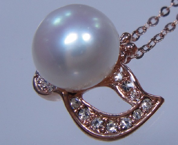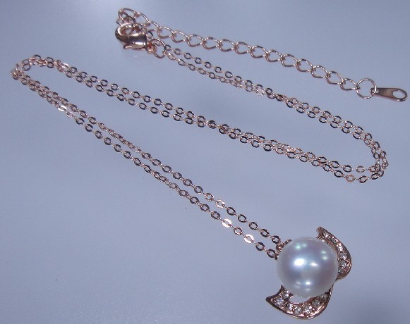 n22460 18KGP 925銀と天然真珠ペンダントトップ チェーン付き パール