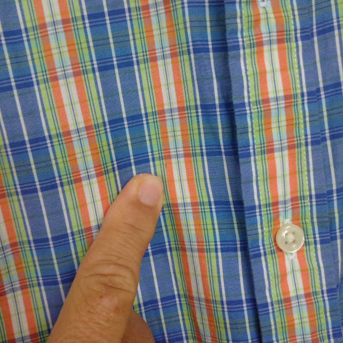多少の誤差はお許しください。針先ほどのピンホールがありますが、生地はしなやかで良い雰囲気です。さらっとした綿ブロード、ボタンダウン。できる限りダメージは説明させていただきますが、こちらが気づかない程度のわずかなしみ、よごれ、