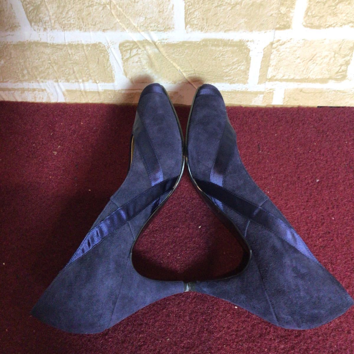 【売り切り!送料無料!】A-203 Mode Maffia!パンプス!4 23.0〜23.5cm位!青!リボン!スエード!おしゃれ!可愛い!普段!七五三!ドレス!美品!中古