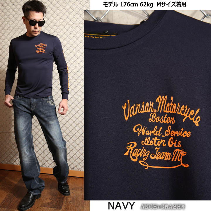 VANSON ドライ長袖Tシャツ ACVL-902 ネイビー【XXLサイズ】バンソン 当店別注 吸汗速乾 抗菌防臭 UVカット ハーレー バイカー