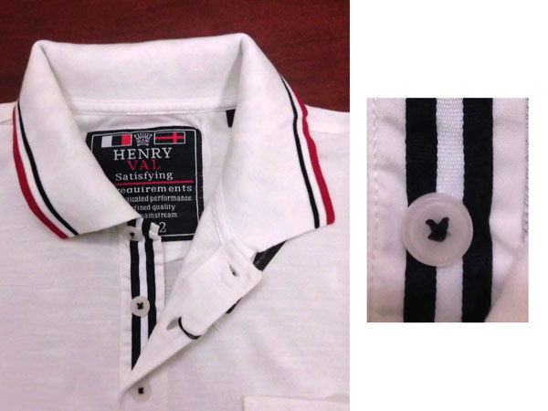 ブランド「ヘンリーバル」の半袖 ポロシャツ/カットソー/ニットシャツです。 【綿ポリエステル・特徴のある生地スラブ/バーズアイ素材を使用】 綿ポリエステルのスラブ/バーズアイ素材を使用しています。 表面感のある、むらっぽい生地・スラブの生地を使用 織柄ぽく見え、清涼感が感じられます。 薄手で柔らかな質感です。 【デザイン・ディティール・衿裏のプリント柄がおしゃれ】 プレーンなポロシャツ・ニットシャツです。 前合わせボタン3個のプルオーバーとなります。 前立て内側部分にはリボンをジョイントしています。 衿裏にはロゴ・英文字等のリゾート感覚のプリント柄を施しています。 衿を立てるといっそうお洒落感がアップします。 左胸にポケットを設けています。 フラッグhv刺繍等を施しています。 衿部分、袖先部分には紺・赤のラインアクセントをきかせています。 袖はちょうちん袖となります。 【スタイル・シルエット・フィット感】 すっきりとしたポロシャツとなります。 ゆったりシルエットです。 中国製。 |