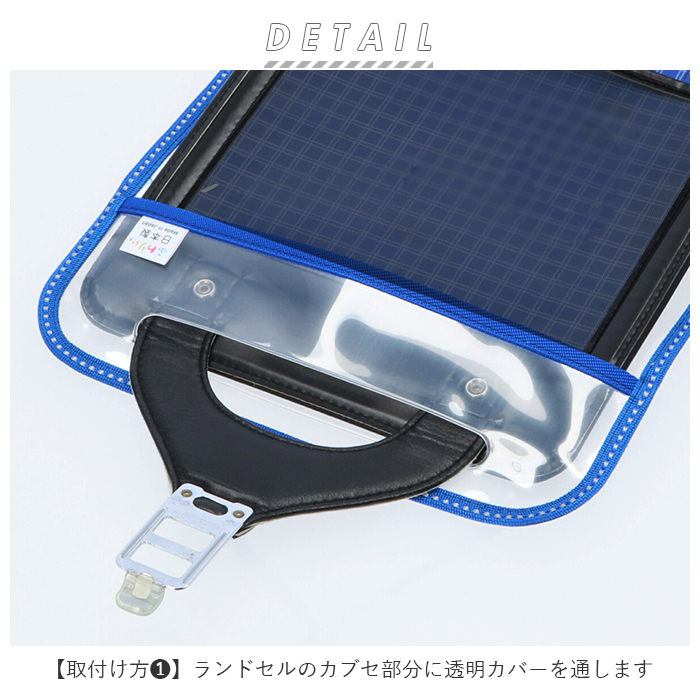 商品説明 | ・雨や汚れから大切なランドセルを守る!反射材付き、透明ランドセルカバー。 ・6年間毎日使うランドセルをいつまでもきれいに大切に使える便利なカバー。 ・取り付け方はカンタン!ランドセルのカブセ部分に透明カバーを通して、根本をマジックテープで固定。ショルダーベルト付け根の吊カンにゴム紐を引っ掛けるだけ。 ・透明カバーフチ部分には反射材付きで、ママパパ安心。薄暗い雨の日や冬の夕方の下校時など、すれ違う車からお子さまの存在をしっかりアピール! ・ランドセルのカラーやデザインをそのまま生かす透明タイプなので、悪目立ちせず、お気に入りのデザインで自分のランドセルがすぐに見つかる! ・対応サイズ:ランドセルのカブセサイズが、タテ約44cm~47.5cm、ヨコ24.5cm~25.5cm程度。 (※上記サイズ内であれば、ふわりぃランドセル以外でもお使いいただけます。) ・焼却したときに有毒ガスが発生しにくい、環境にやさしいPE・EVA素材を使用した安心の日本製。 |
