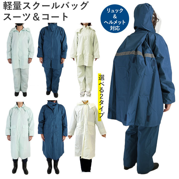 サイズ | [スクールバッグスーツ(上下セット)] ・SSサイズ ・Sサイズ ・Mサイズ ・Lサイズ ・LLサイズ ・3Lサイズ ・4Lサイズ ・5Lサイズ ・BLサイズ [スクールバッグコート] ・SSサイズ ・Sサイズ ・Mサイズ ・Lサイズ ・LLサイズ ・3Lサイズ ・4Lサイズ ・115Bサイズ ・収納袋のサイズ [縦]約36cm/[横]約31cm ※スクールバッグスーツは、115Bサイズのお取り扱いがございません。 ※スクールバッグコートは、5Lサイズ・BLサイズのお取り扱いがございません。ご注意ください。 ※サイズについて詳細は、サイズ表をご覧くださいませ。 |