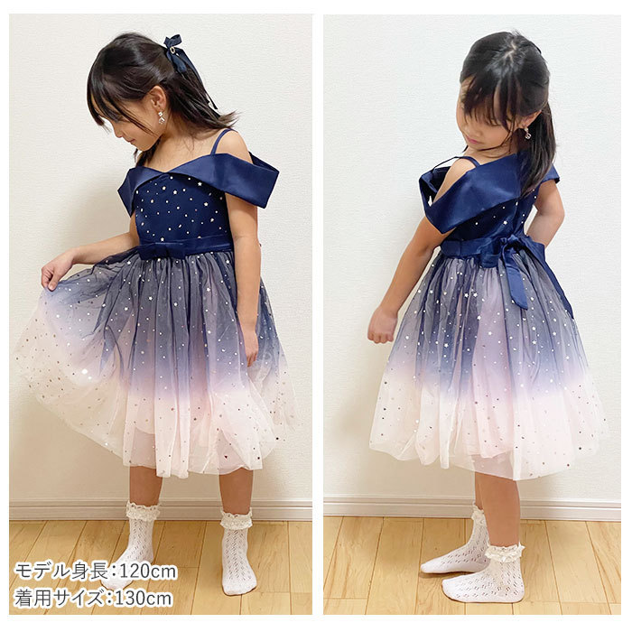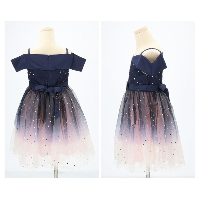 | 商品説明 | ・まるでプリンセスみたい!ふんわりと拡がる裾が印象的な、キッズ用パーティードレスが登場♪ ・デコルテから肩にかけて大胆に開いた襟元のデザインが、ちょっとおしゃまな女の子にぴったり♪ ・素材はツヤのあるサテン生地を使用。 ・スカート部分は透け感のあるチュール生地。星空のようにキラキラと輝くスパンコールが華やかさをよりアップ♪ ・着脱は背中のファスナーでらくらく♪ウエスト部分はリボンでしっかりとマーク。 ・女の子が大好きな要素がギュッと詰まったドレス。身に着ければ、どんな場所でもたちまち主人公に♪ |