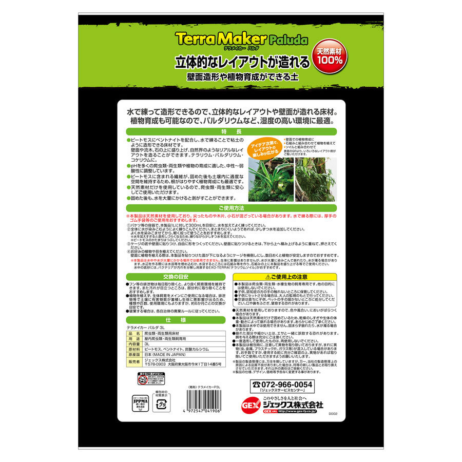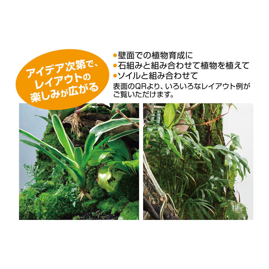 ●水で練って造形できるので、立体的なレイアウトや壁面が造れる床材。植物育成も可能なので、パルダリウムなど、湿度の高い環境に最適。