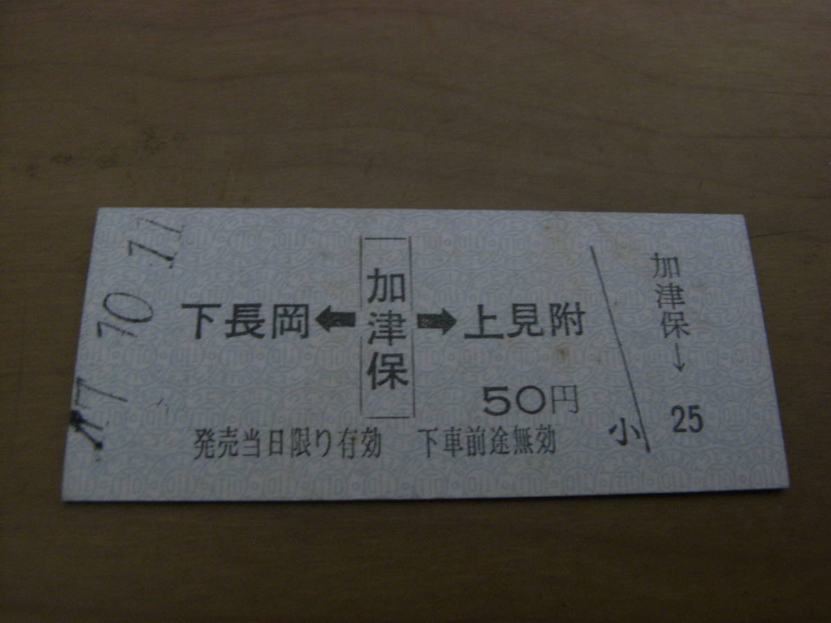 越後交通 下長岡←加津保→上見附 50円 昭和47年10月11日 加津保駅発行