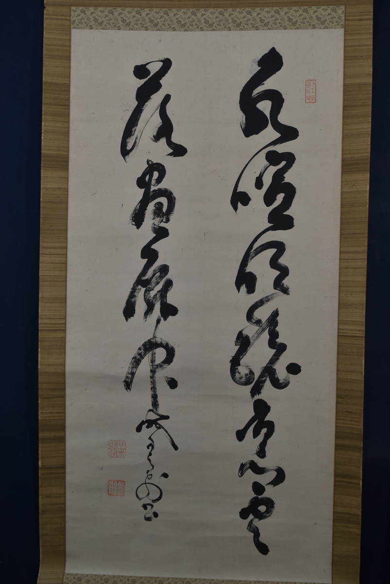 真作/山岡鉄舟/五言二句/二行書//掛軸☆宝船☆Z-870
