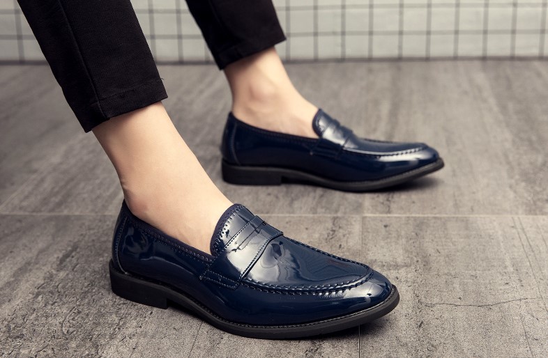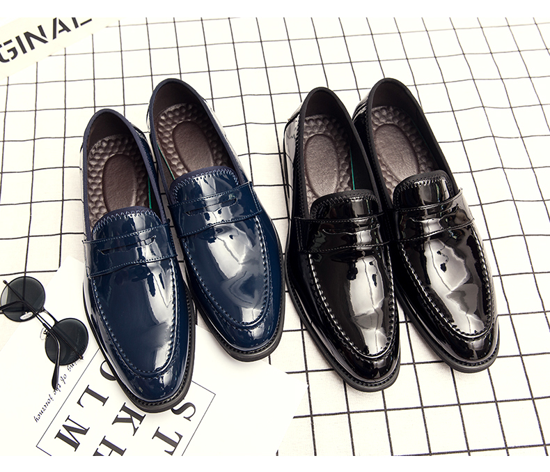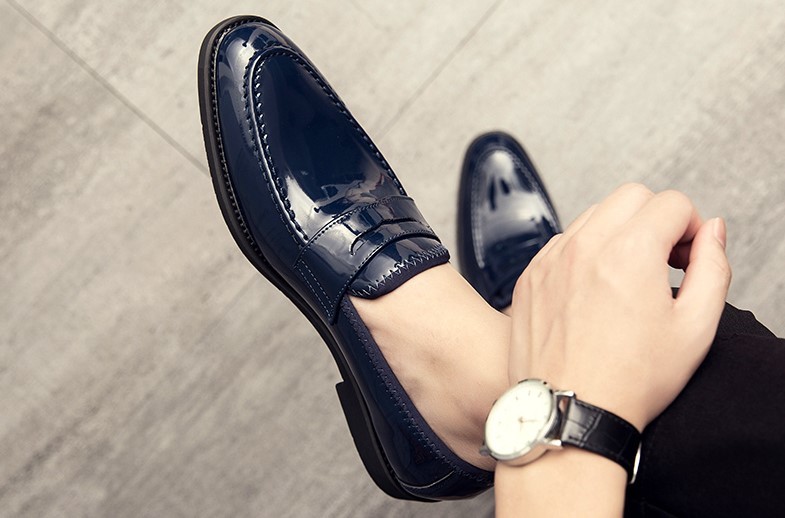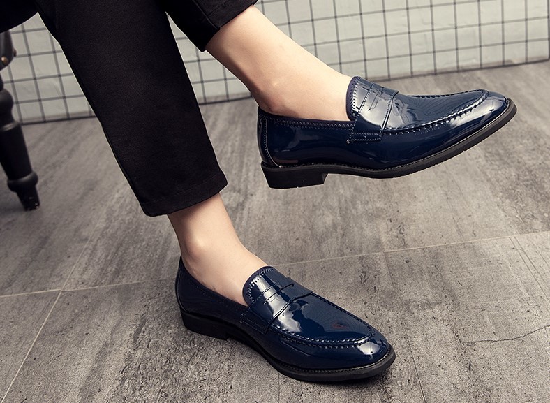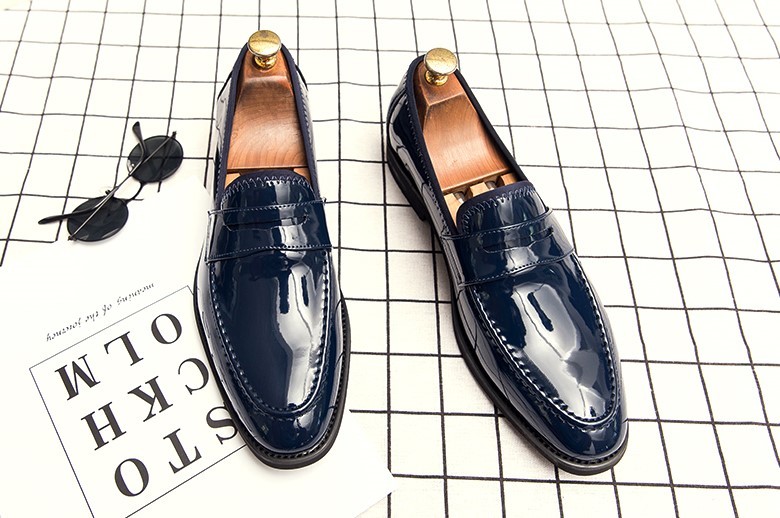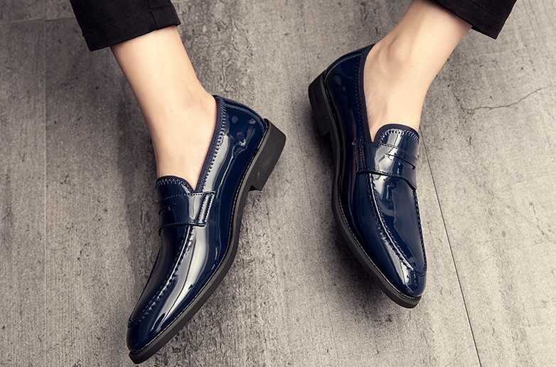 ★NEW★メンズ TL00368-26.5cm/43 ビジネスシューズ ローファー スリッポン 紺色(2色) ツヤあり