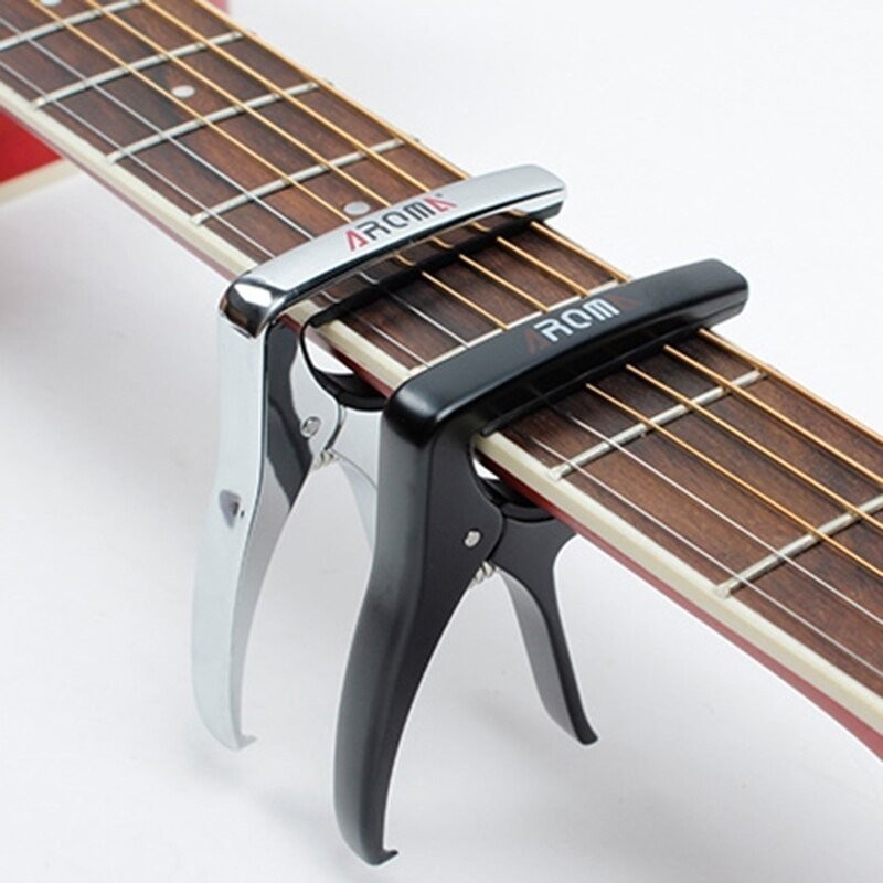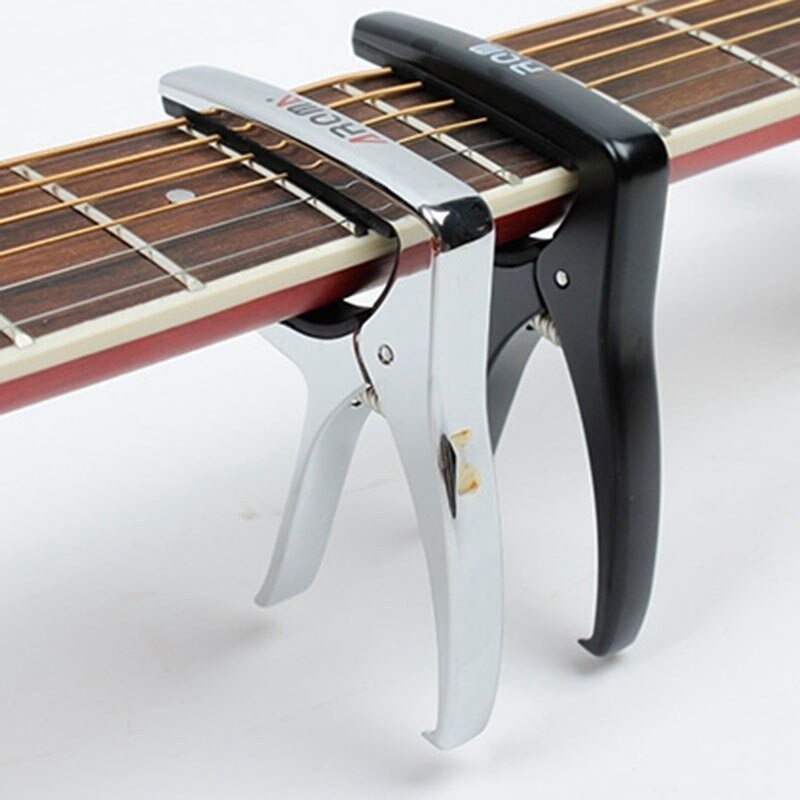 エレキギター・アコースティックギター・フォークギター・ウクレレなど様々なギターに使用出来る、バネ式のカポタストです。