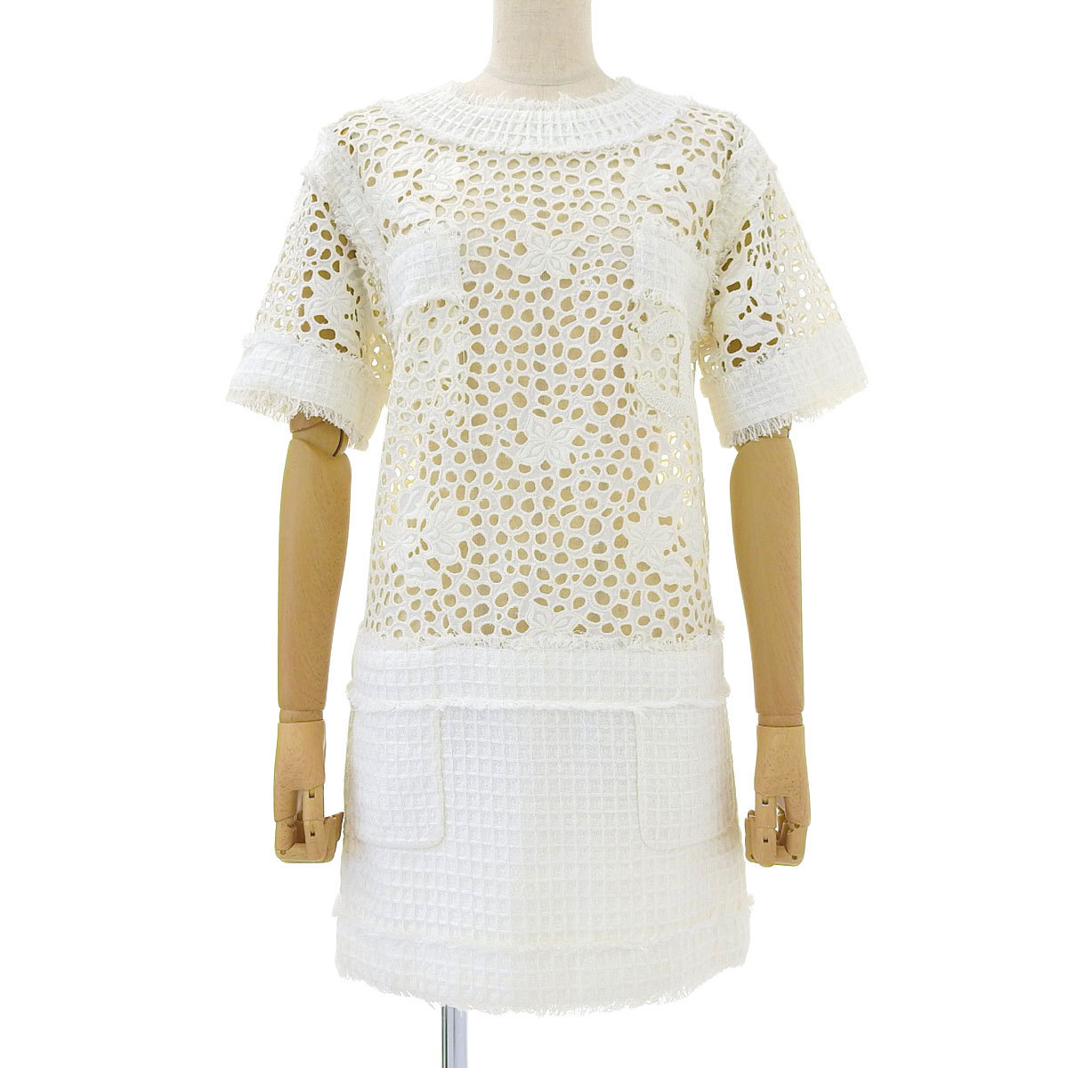 シャネル CHANEL レース 半袖 チュニック ホワイト 白 36 レディース 8053