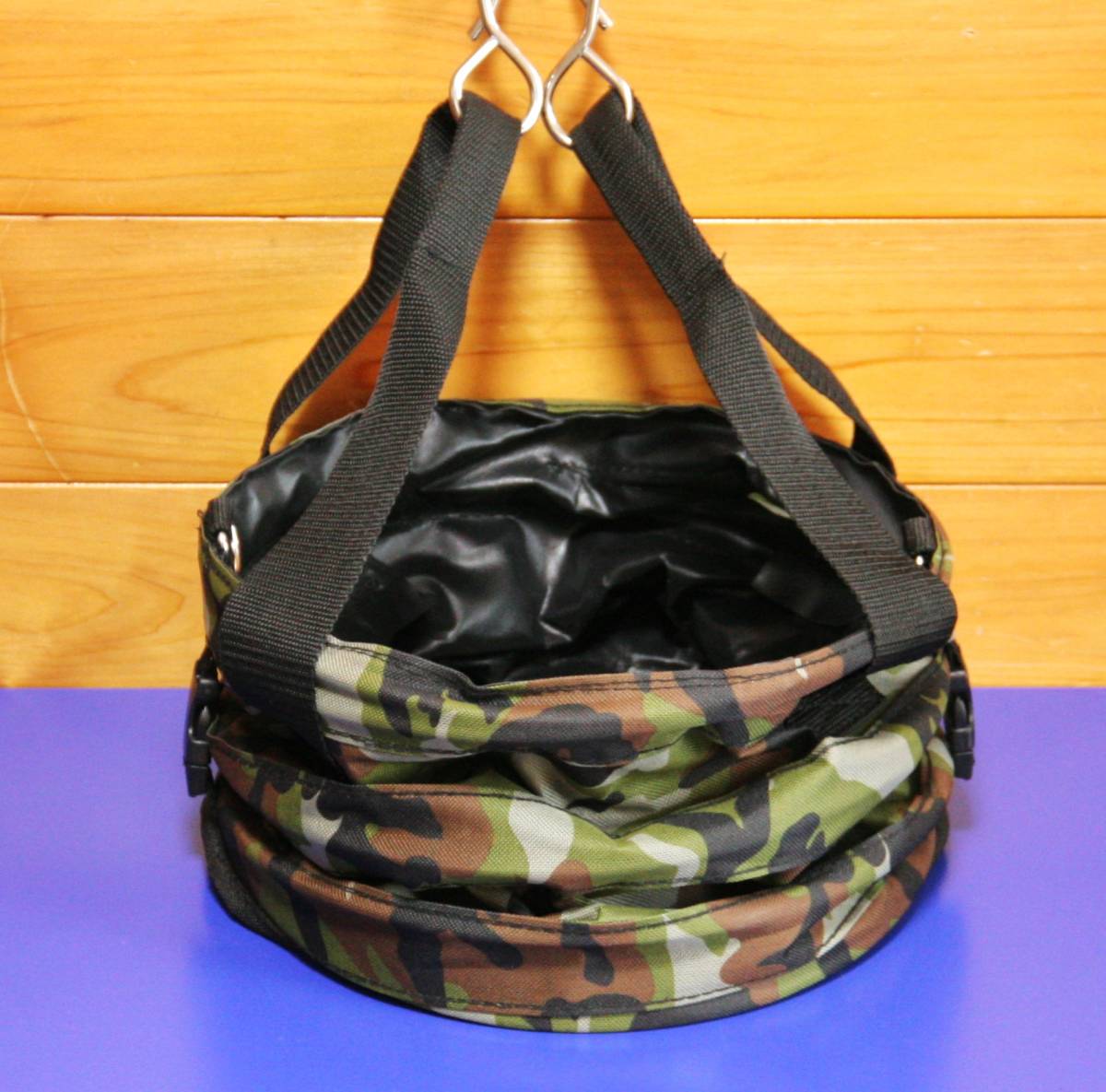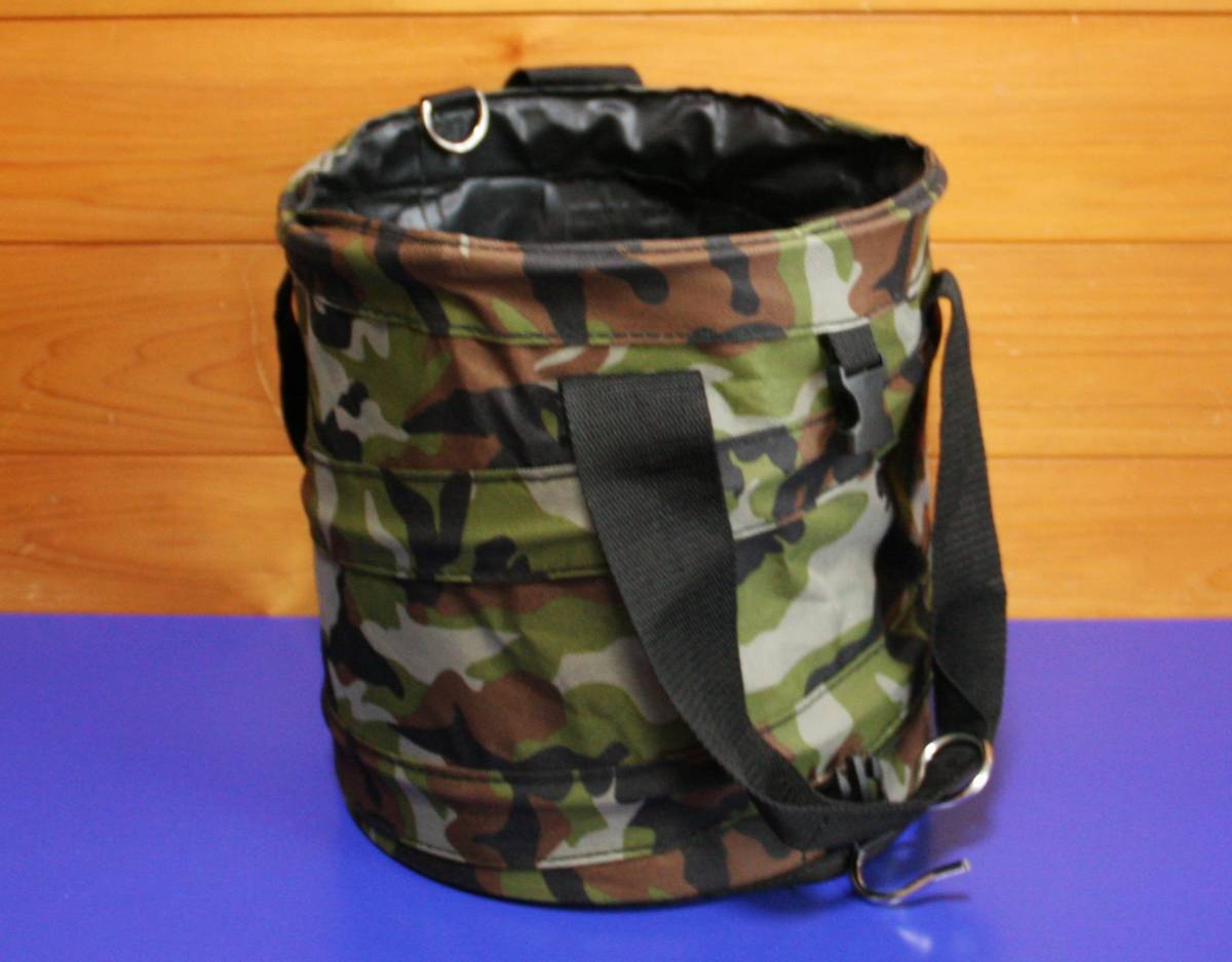 強力スプリングの折り畳みポップアップバッグ。ビニール袋を入れることでゴミ箱やバケツとしてもご使用可能です。