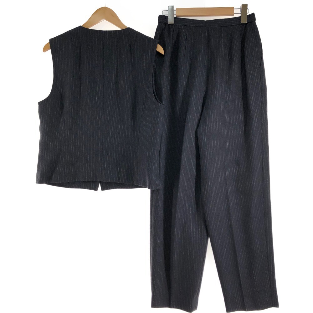 【商品名】中古 Leilian レリアン レディース ストライプ ベスト&ボトム サイズ11 グレー やや傷や汚れあり