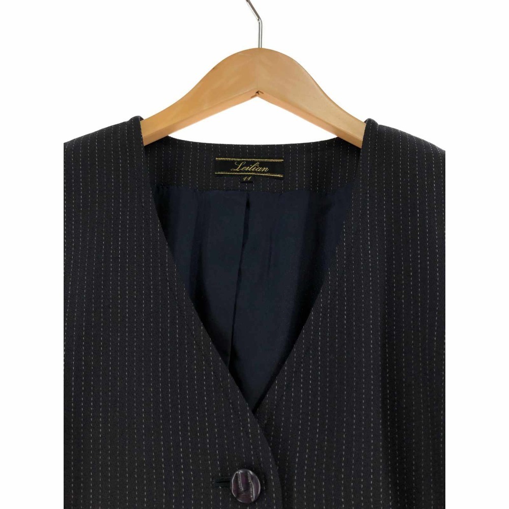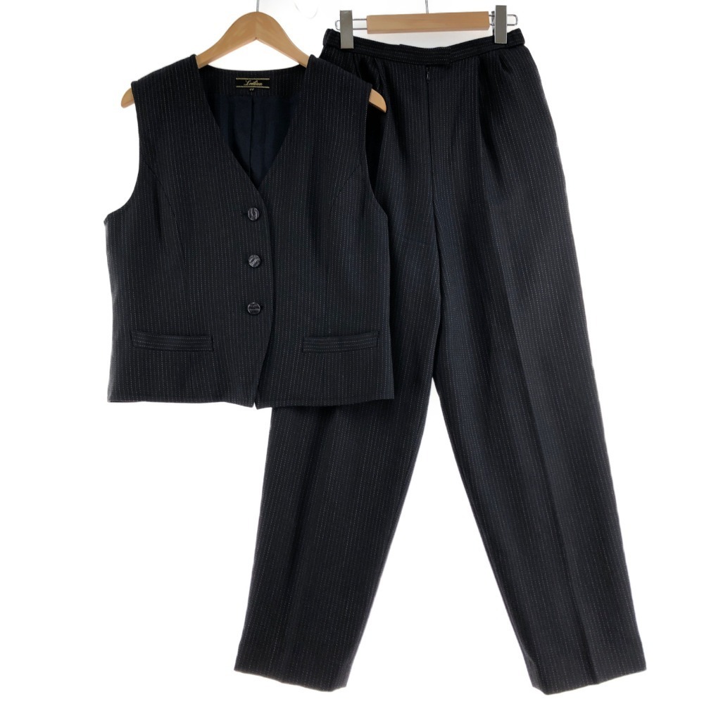 〇〇 Leilian レリアン レディース ストライプ ベスト&ボトム サイズ11 グレー やや傷や汚れあり