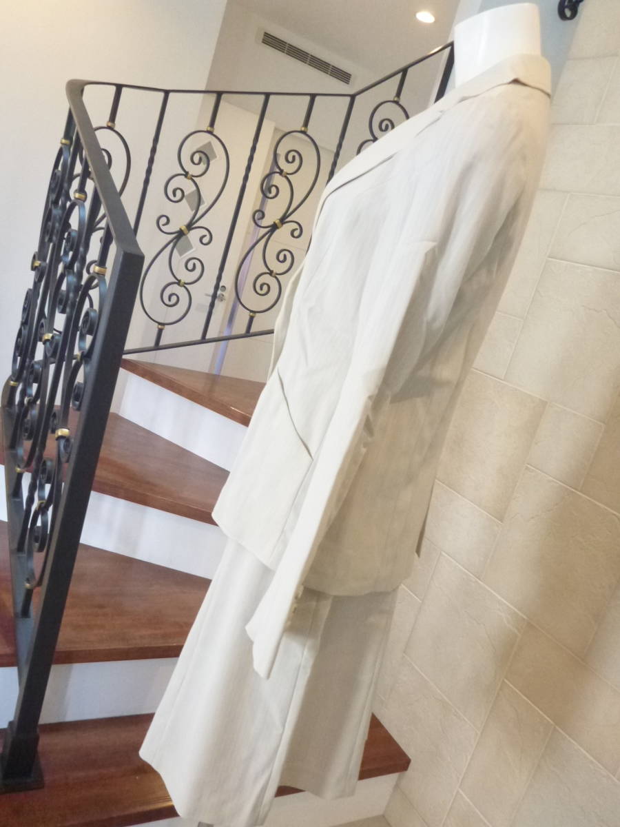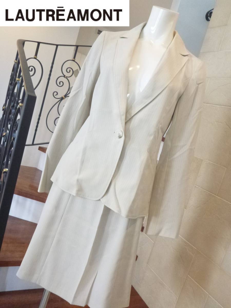 美品 LAUTREAMONT ロートレアモン ★ベージュ ストライプ生地 春夏スーツ 38 M相当
