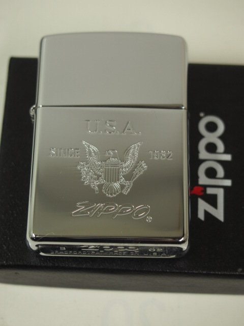 ■ 2002 Zippo Eagle 1932(ジッポーイタリックロゴ)、ハイポリッシュクローム#250ベース、最近では見かけないモデルです。裏面無地銀色。