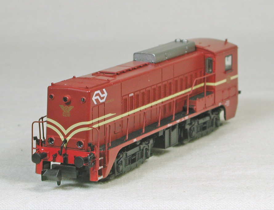 1955年からオランダ国内のアラン社、シュナイダー社によって150輌がライセンス製造された電気式ディーゼル機関車です。最高時速100km/hで貨物列車だけでなく旅客列車の牽引にも運用されたましたが、暖房装置がないために冬場は、暖房車の連結を必要としました。19