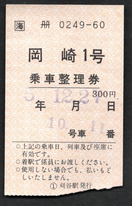 H5 岡崎1号乗車整理券(刈谷駅)