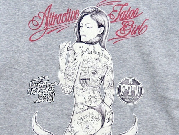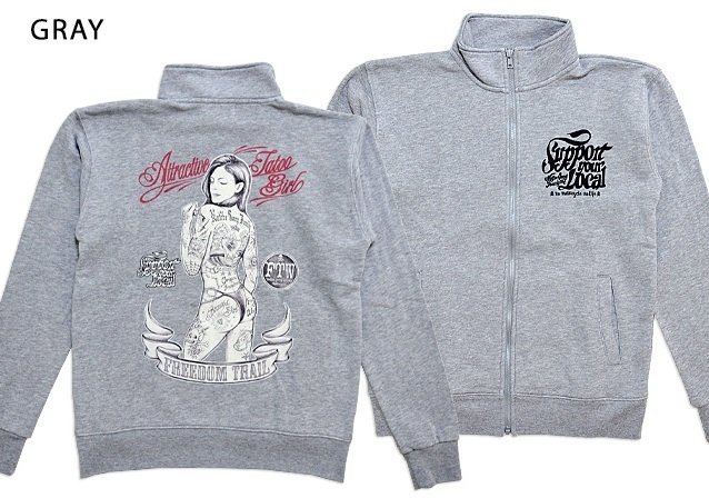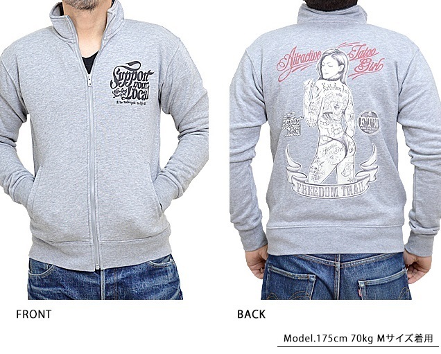 CHIGIRIさんのアメカジライン!Native Gang Familyから「手描き風ビキニタトゥーガールスウェットジップジャケット(NGF36-886)」のご紹介です。 バックにタトゥーガールをプリントしたジップアップスウェットが登場。 バックにしっかり柄を入れている分、フロントはシンプルに仕上げ、メリハリをつけました。 ボディーには、裏毛タイプのスウェットを採用。 | |||||||||||||||||||||||||