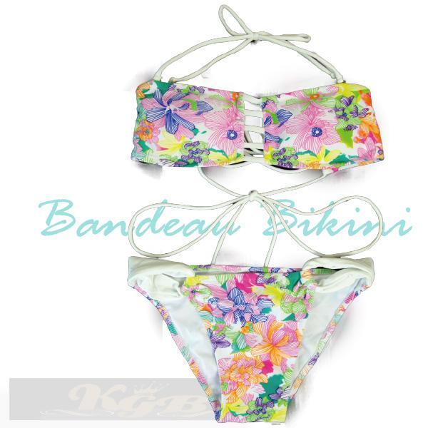 水着 レディース M ガーデンフラワー/ 大人ストラッピー&レースアップ バンドゥビキニ ホルター ノンワイヤー 新品