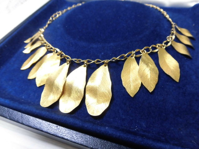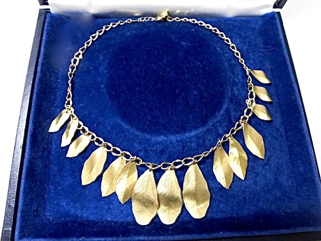 ●美品/ Daisy/デイジィー/輝くゴールドリーフのネックレス/ 存在感大 ●Daisy/デイジィー輝くゴールドリーフのネックレスです。 ●金色に輝くリーフの美しい葉脈が光り、金運上昇!真夏に嬉しいお品です。 比較的軽く、夏場につけやすいネックレスです、ほぼ未使用、美品。(画像参照) ●カラー/ゴールドGP ●サイズ /全長45cmアジャスター6cm ●状態/美品 目立った損傷なし ◎◎24時間以内の手続き開始、48時間以内のYahooかんたん決済、迅速な気持ちの良いお取引ができる方のみご入札ください。同梱発送は可能です、初めにまとめて取引のお手続きをして下さい。◎◎ | |