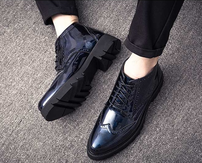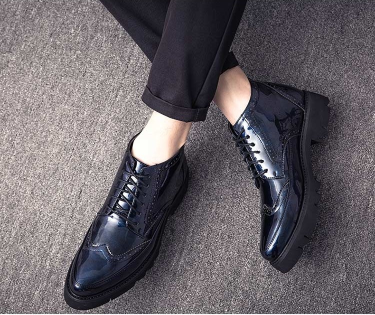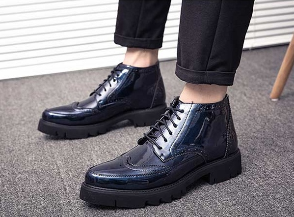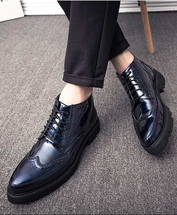 ★NEW★メンズ TL81066-25.5cm/41 ショートブーツ ビジネスシューズ ブルー(3色) ウィングチップ 厚底 エナメル