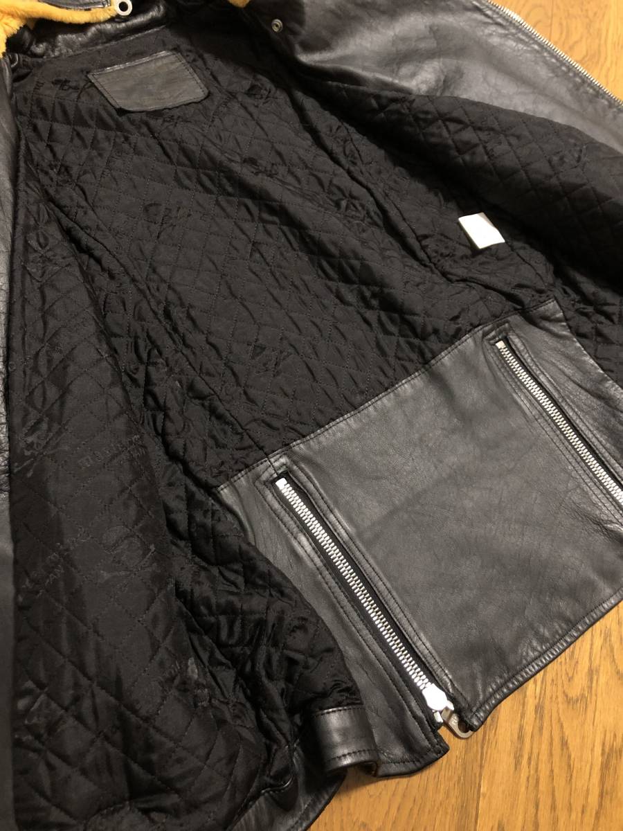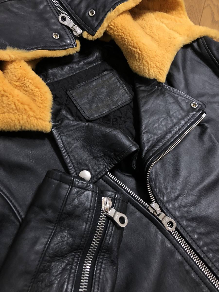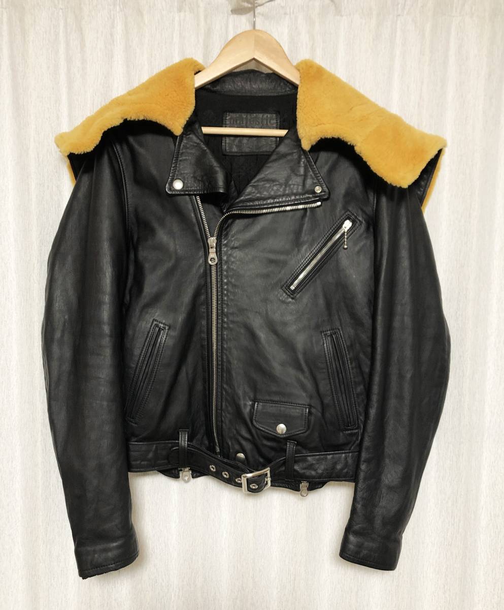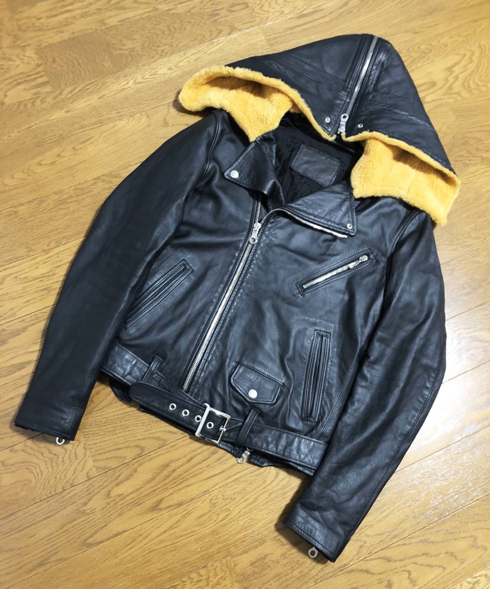 [mastermind JAPAN] 08AW majestic期 リアルムートンフード ダブルライダース レザージャケット 本革 牛革 ブラック マスターマインド