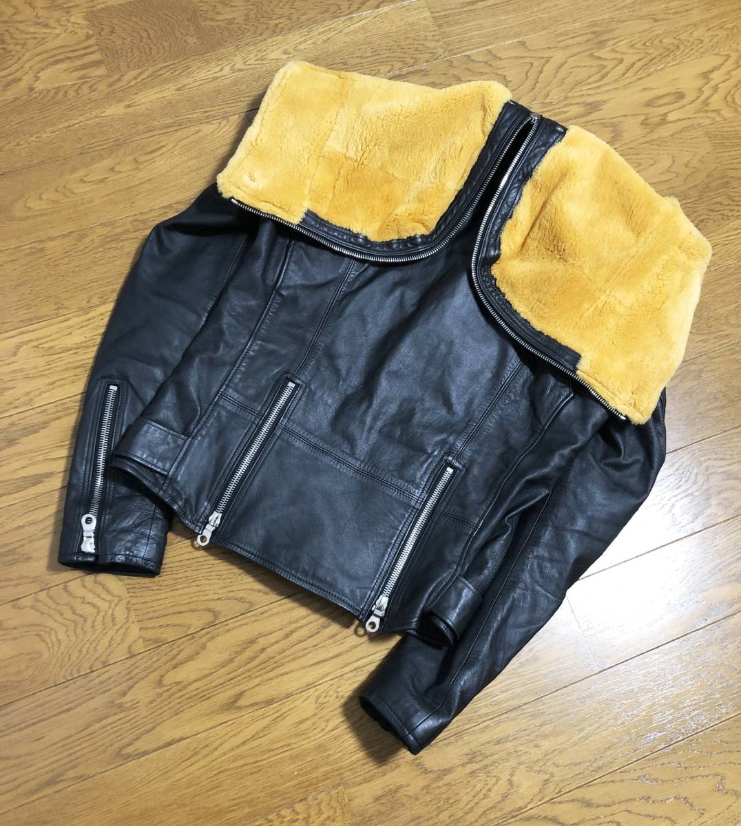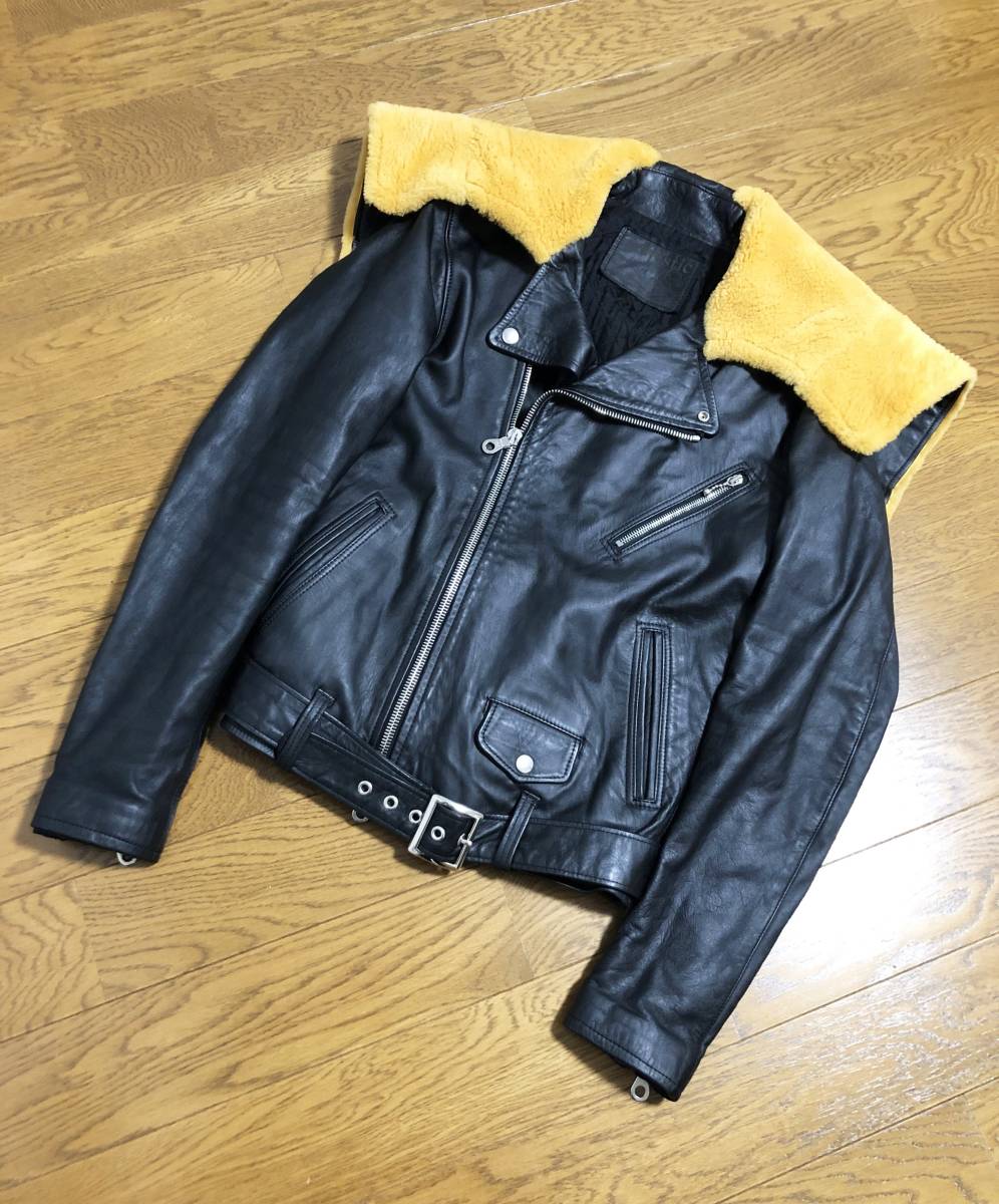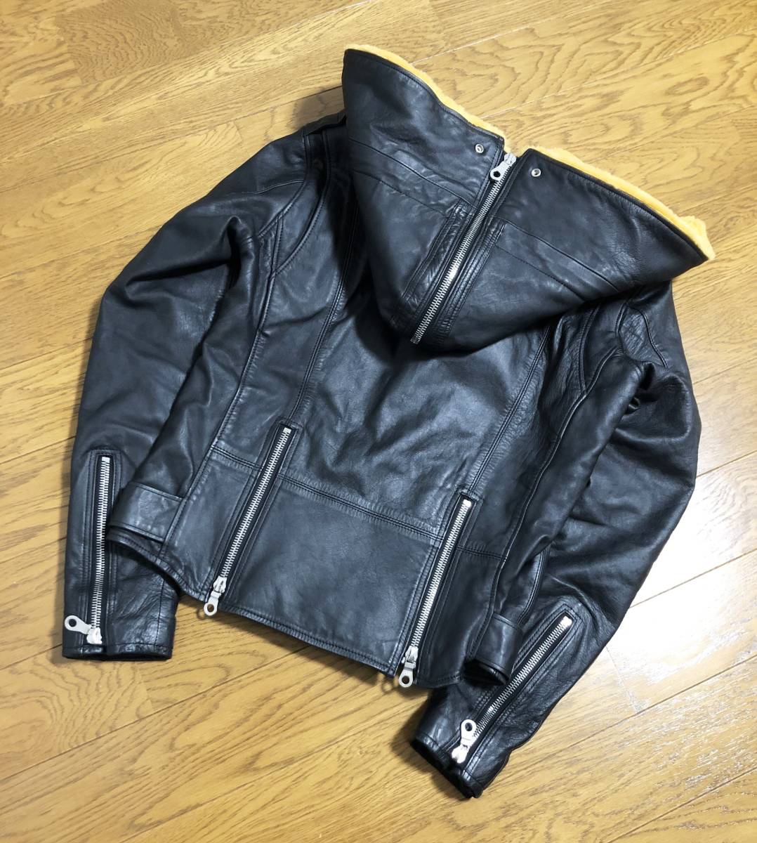 [mastermind JAPAN] 08AW majestic期 リアルムートンフード ダブルライダース レザージャケット 本革 牛革 ブラック マスターマインド
