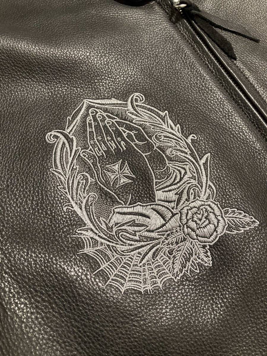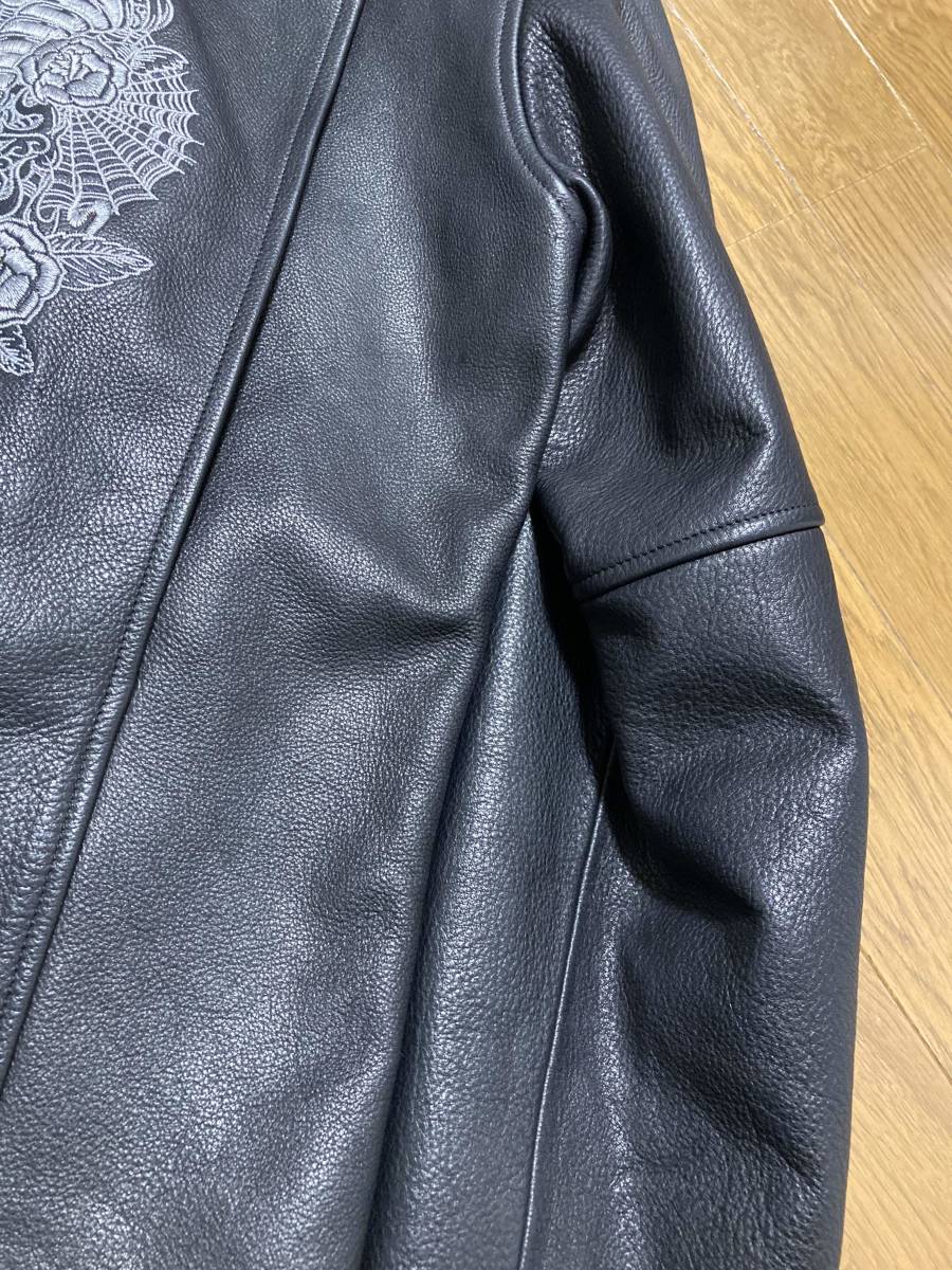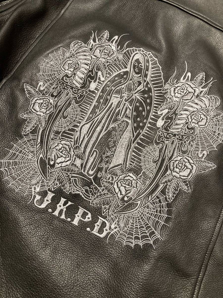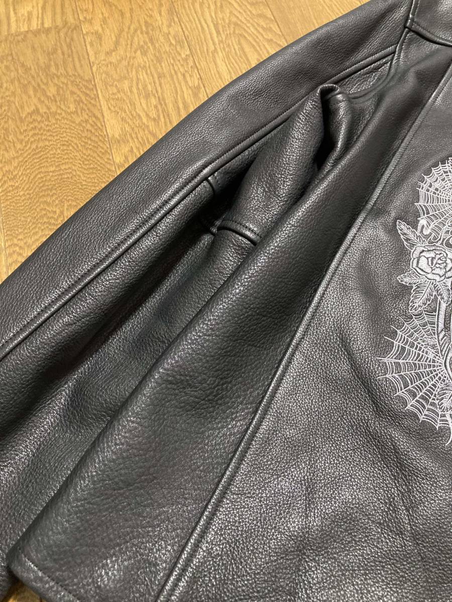 極美品☆[JUNKY'S PARADISE J.K.P.D×Y'2 LEATHER] 定価97,900 合唱マリア刺繍 シングルライダース レザージャケット 44 XL 牛革 ブラック