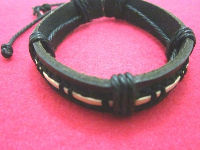 半額 エスニック ハンドメイド本皮 ブラック×ホワイト デザインブレス 黒×白 ♪レザーブレス♪ 男女兼用 171006-3