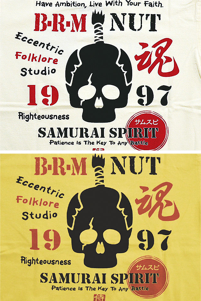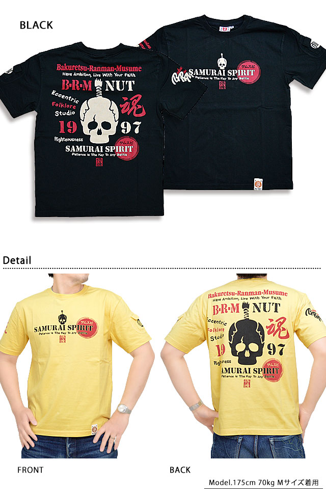 爆烈爛漫娘さんから「サムライスピリット半袖Tシャツ(RMT-318)」のご紹介です。 爆烈爛漫娘では定番の『サムライスピリッツ』シリーズの最新作! バックにしっかり柄を入れている分、フロントはシンプルにデザイン。 右袖にはブランドロゴの頭文字をエンブレム風にプリント。 生地には、爆烈爛漫娘お馴染のよれにくくタフなボディーを採用しました。 | ||||||||||||||||||||||||||||||