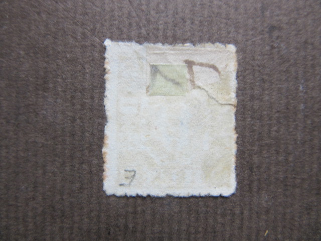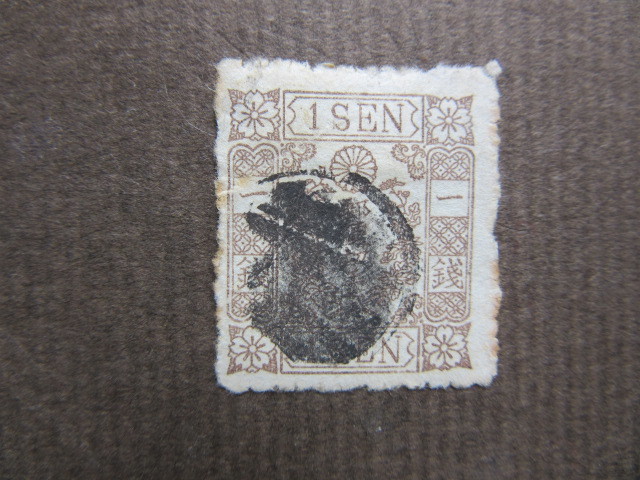 手彫切手 桜洋紙改色カナ入り 1銭(?)(使用済み、1875年)
