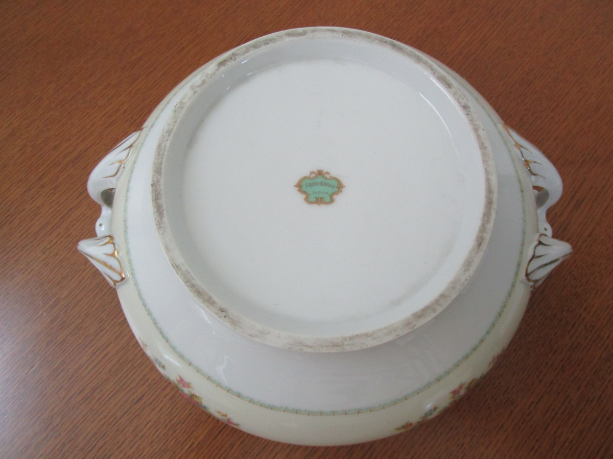 spoto china japan 蓋付 持ち手付 皿 大皿 花柄 になります。 長期保管期間あり、底面に擦れ(色付き)、金色持ち手部分等剥げございます。 【サイズ】 口径 22.5cm 持ち手まで 28cm×高さ 7.5cm 蓋閉めた状態 15cm 状態も含めて写真にてご確認下さい。 | ||||