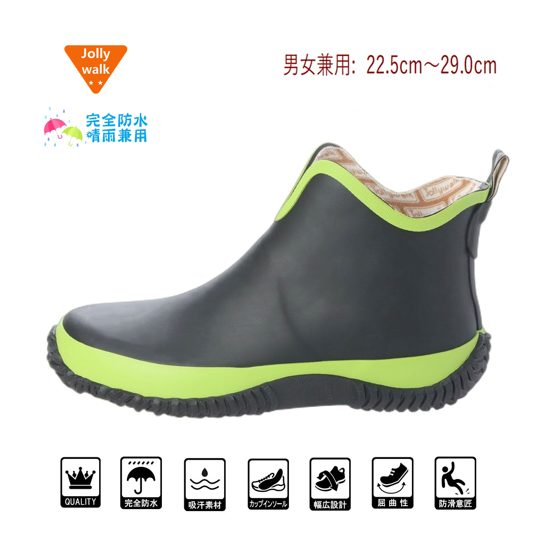 ゴム製ショートレインブーツで、耐摩耗性・耐屈曲性・耐候性に優れています。