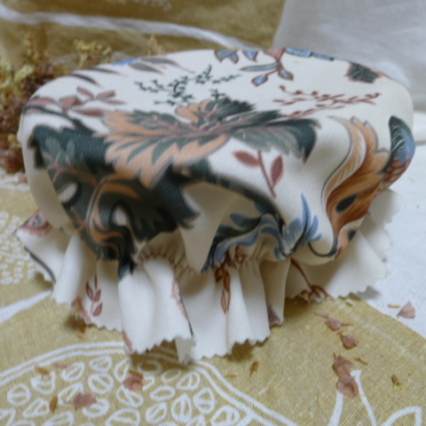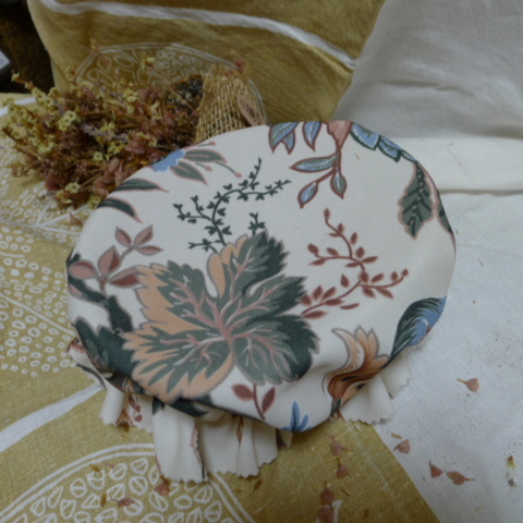 アンティーク布で作った被せ布をお付けします(写真参照)。