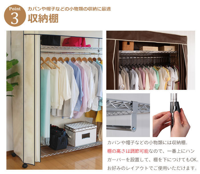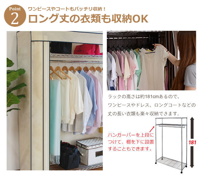 商品説明 | カバー付スチールハンガー幅約91センチ。 【仕様】 ■商品サイズ:約幅91×奥行46×高さ181cm(キャスター含む) ■重量:約14kg ■素材・材質:[本体・棚板]スチール、クロムメッキ [カバー・前カーテン]不織布 ■耐荷重:[棚板]約50kg/1枚あたり [ハンガーバー]約27kg/1本あたり ■生産国:台湾 ■組立区分:お客様組立品 ■梱包数:1個口 ■キーワード:ハンガーラック カバー付き 幅90 おしゃれ スリム カバー カーテン付き スチールハンガー パイプハンガーラック パイプハンガー 頑丈 パイプハンガーカバー 衣類収納 シェルフ ラック ワードローブ カバー付き 90cm キャスター付き スチール |