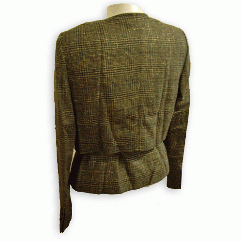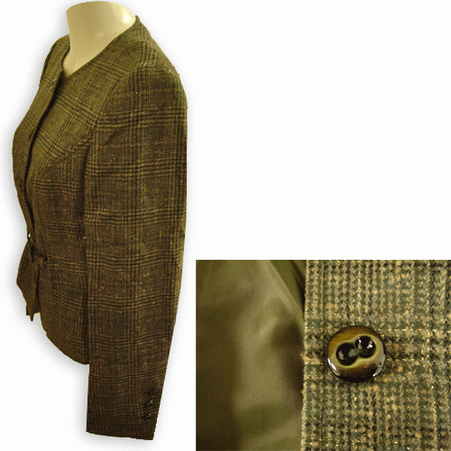 レディースノーカラージャケット ツイード グリーンチェック サイズ:40