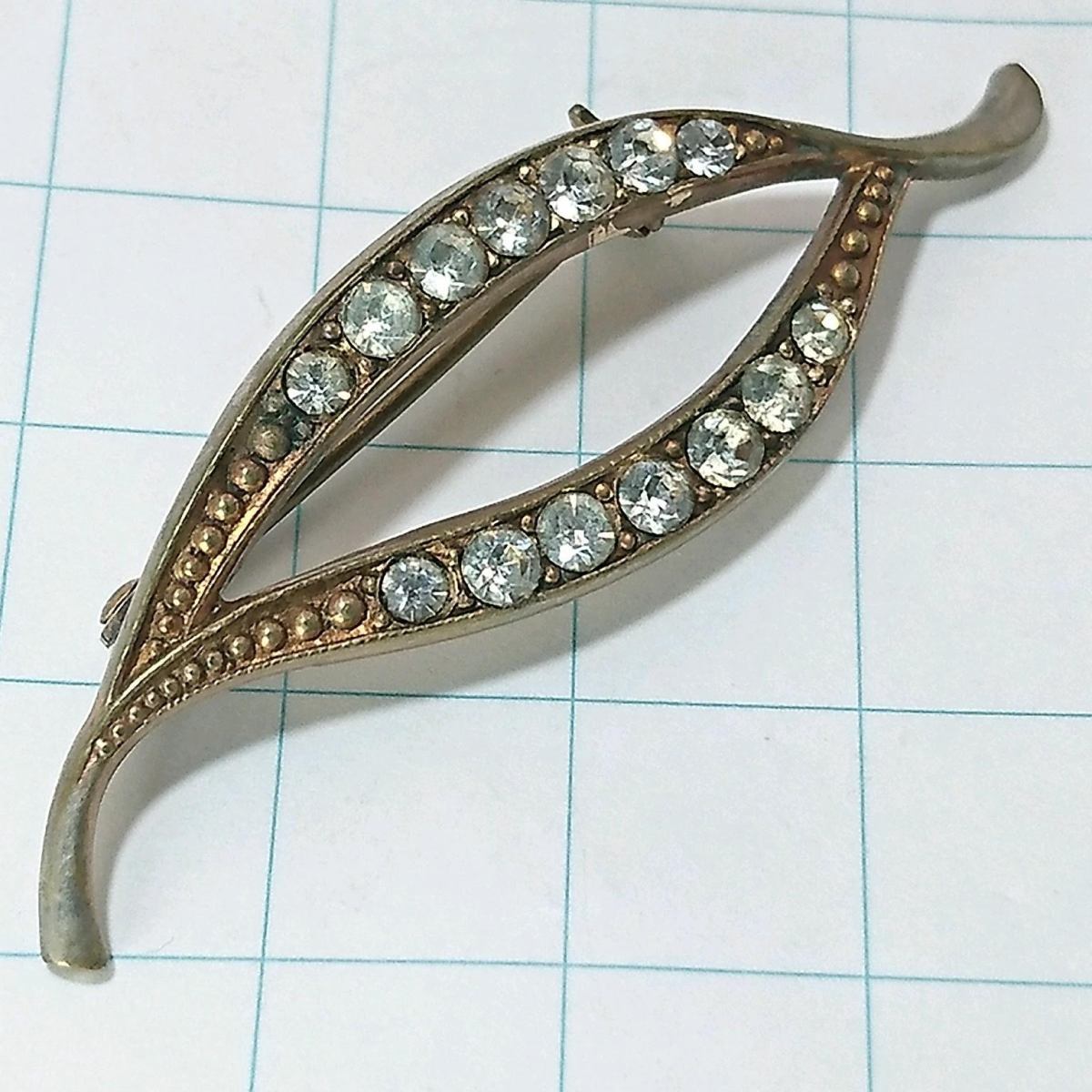 送料無料)ビンテージ☆クリアラインストーン 葉っぱモチーフ☆アンティークブローチ A09065