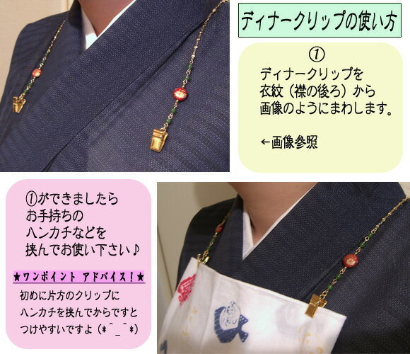 お手持ちのハンカチ・タオルの一辺両サイドをクリップに挟んでご使用下さい。