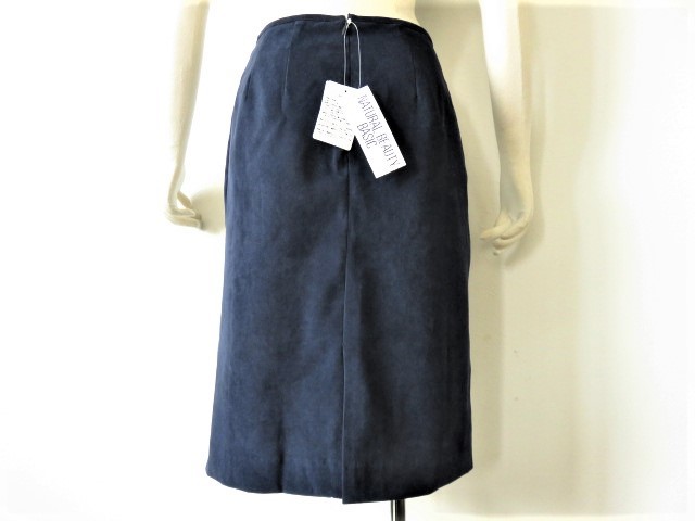 ■新品 未使用 【  NATURAL BEAUTY BASICナチュラルビューティーベーシック 高級 ヌバック スカート  濃紺 ネイビー 送料198円 b1730